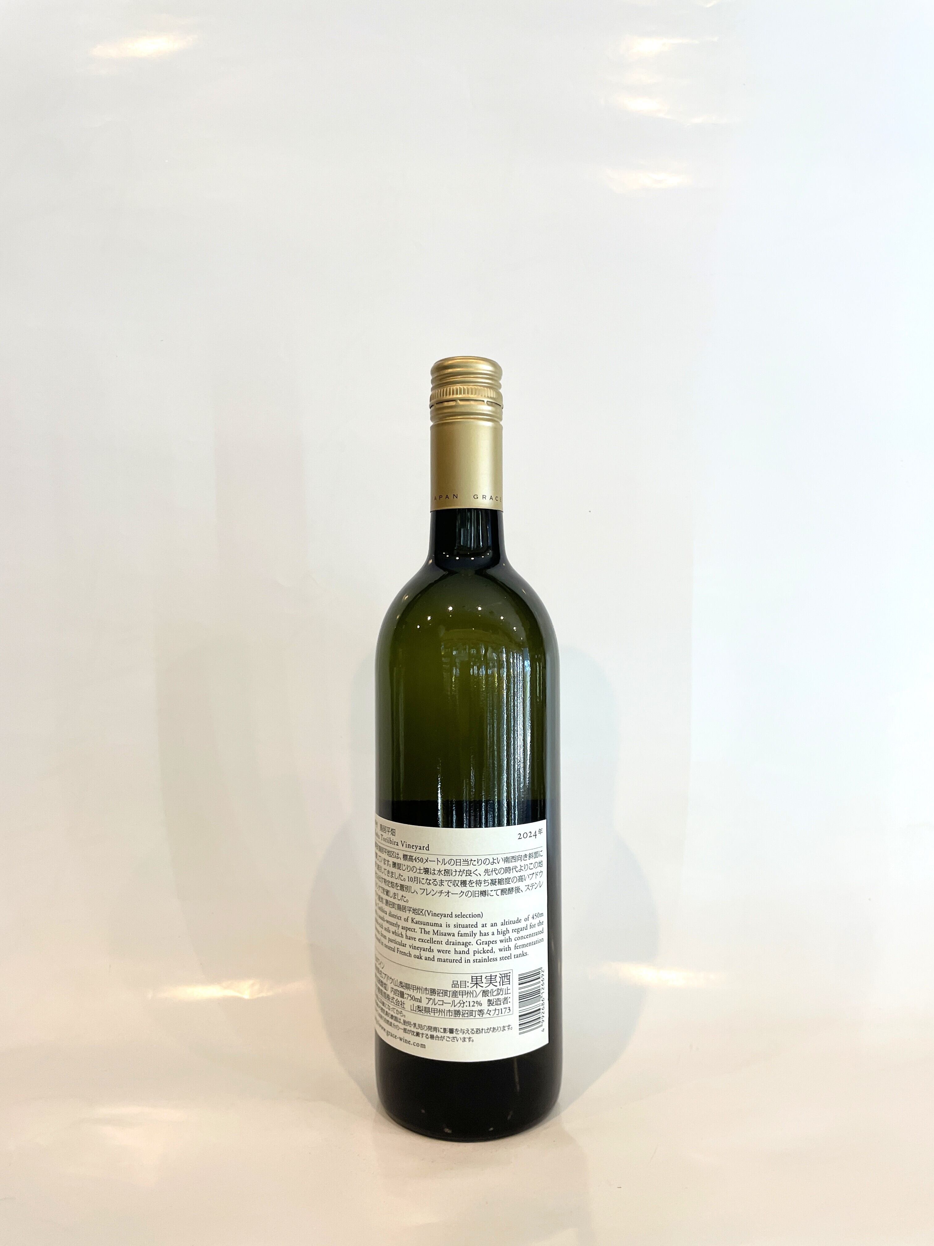 品目:果実酒(白ワイン) 品種:甲州 100% 産地:山梨県(勝沼・鳥居平畑) アルコール%:12%